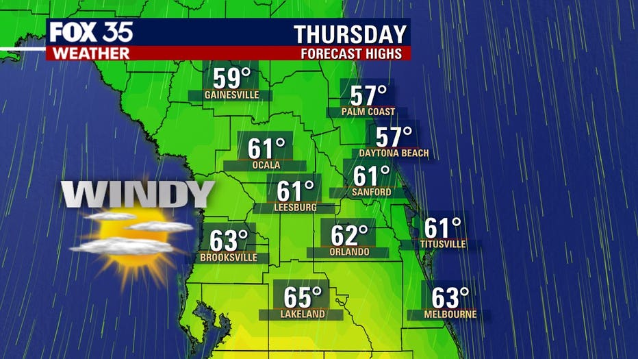 By Friday morning, temperatures will drop to the mid-and-upper 30s north and west of I-4, to around 45 in Orlando.